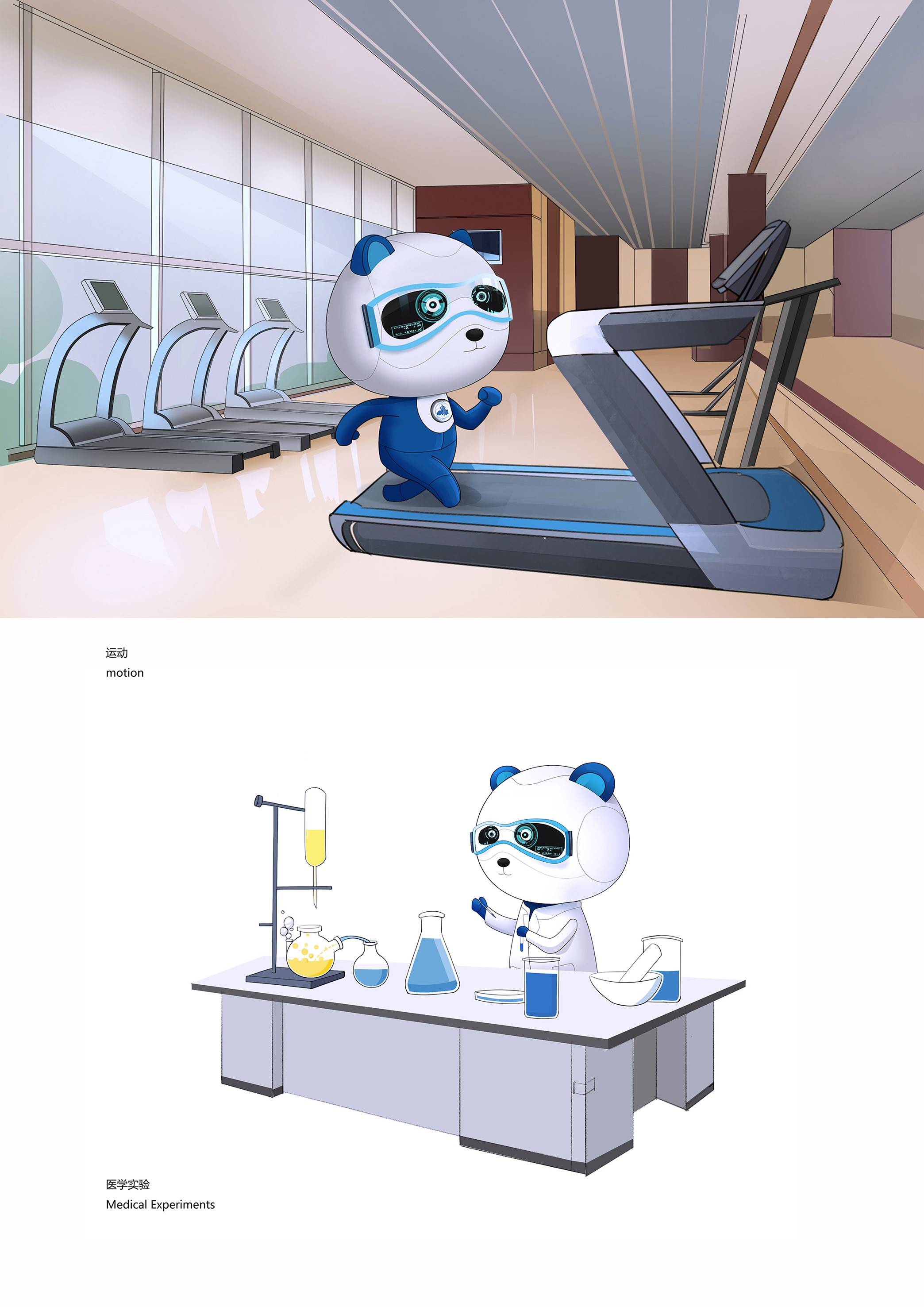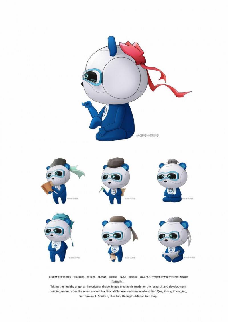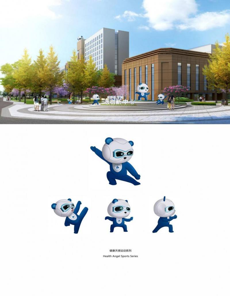 成都医学城品牌IP系统”,这个IP定义为“医学天使”,它是人类生命的健康使者,其AI科技目镜象征着尖端前延的医学生物研究视角。以蓝白为主色调,能更好地反映医学科学的视觉属性。成都大熊猫是世界闻名的IP,是有800万年的物种,被誉为生物“活化石”,是中国的国宝,也是世界的珍宝,凭借其被全球宠爱的影响力,以及可爱、亲和的形象,正是基于此,这一独特的文化符号被巧妙地策划为成都医学城 “医学天使”的IP形象,承载着关爱全人类生命健康的美好愿景与神圣使命。以憨态可掬的熊猫医学天使作为核心主形象,匠心独运地策划并设计出了药学天使到医药天使再到医疗天使的逻辑产业化角色形象,同时深入拓展至古代中医大师系列,以及运动、科研、生产、运营等多个关键领域,构建起了一套完整立体的IP系统。